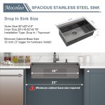 Mocoloo 30 Black Drop In Kitchen Sink 30×22 Workstation Sink Gunmetal Black 16 Gauge Stainless Steel Single Bowl Deep Topmount Handmade Sink
