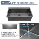 - TRUST-WORTHY MANUFACTURING: This gunmetal kitchen sink is made of premium TRU 16 gauge T304 stainless steel, NEVER RUST. Surface coating with innovative NANO-PVD technology, which works like water on Lotus leaf, leaving no water marks/fingerprints, very easy to clean, resistant to freezing heat, and corrosion resistant