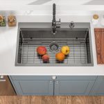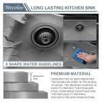 - MORE FEATURES: The black stainless sink with slopped bottom and X-shaped groove design at the bottom of the sink improves drainage for fast draining. R10 tightly rounded radius corners for easy cleaning. 10″ deep bowl provides more room for cookware, and rear-mounted drain for more usable space under the sink. Thick rubber gasket and thick painted backing dampens sound and prevents condensation from damaging cabinets