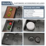 | Included Components | 30 black drop workstation sink, Stainless steel protective bottom rack, drain assembly with basket, Rollup rack, Sturdy& durable cutting board +Colander |