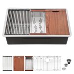 | Included Components | Wood Cutting Board, Stainless Steel Colander, Basket Strainer & Stainless Steel Bottom Grid, Roll-up Dish Drying Rack, 30 inch Undermount Workstation Kitchen Sink |