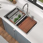 Workstation kitchen sink comes tracks for our customized accessories. It can well enhance your cooking or prepping efficiency and offer a clean and neat look to your guest.