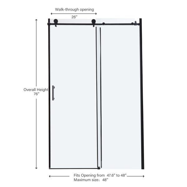 Measuring 76 inches in height and 48 inches in overall width, this shower door is designed to fit perfectly in your bathroom. The glass thickness measures 0.31 inches, ensuring sturdiness and safety. With a weight of 114.64 lb., the door is solid and durable. The shower door pull handle allows for convenient sliding, making your shower experience effortless and enjoyable. It is suitable for maximum widths of 48 inches and minimum widths of 47.6 inches, providing versatility in installation.