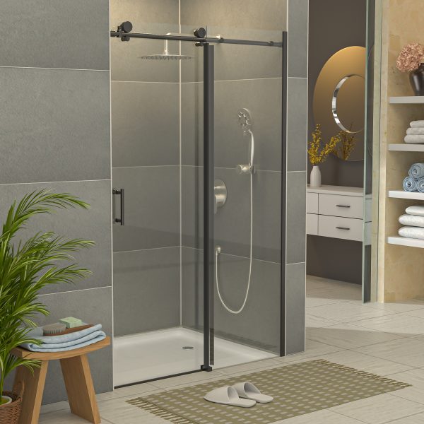 Mocoloo HRB-MOM-6A21-48MB 48” W x 76” H Single Sliding Semi-Frameless Shower Door with Clear Glass