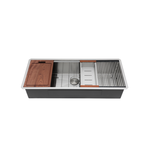 Mocoloo 45" W Undermount Workstation Kitchen Sink 16G Stainless Steel Single Bowl Kitchen Sink with Cutting Board and Colander
