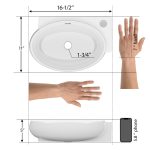 - SINK SPECIFICATION: 16″ L x 11″ W x 5.7 H”. Drain opening is 1.75″ as standard. Ideal for small bathroom, powder room. Pop-up drain and faucet are not included